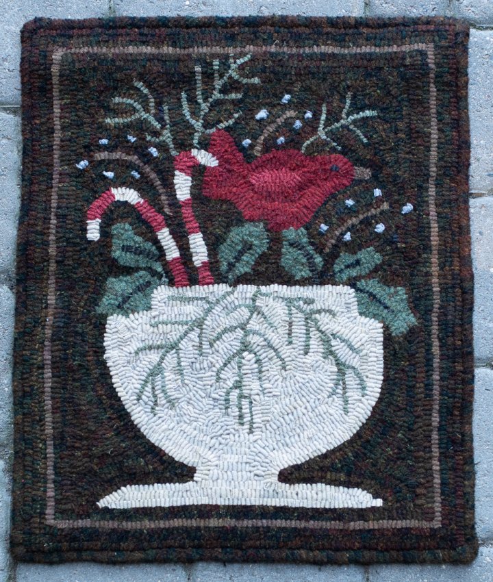 Yuletide Trimmings (hooked by Cheryl Bell) 21x31 linen $55.00 |