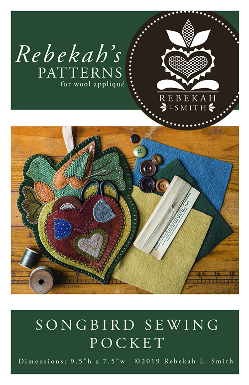 Songbird Sewing Pocket by Rebekah's Patterns 9.5" x 7.5" wool applique Pattern: $8.00 |